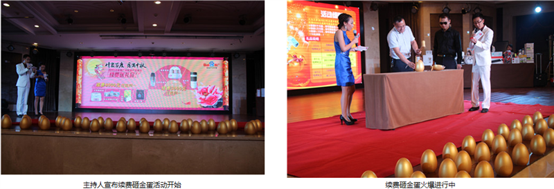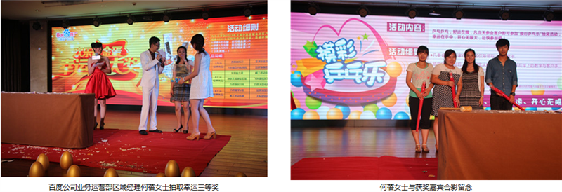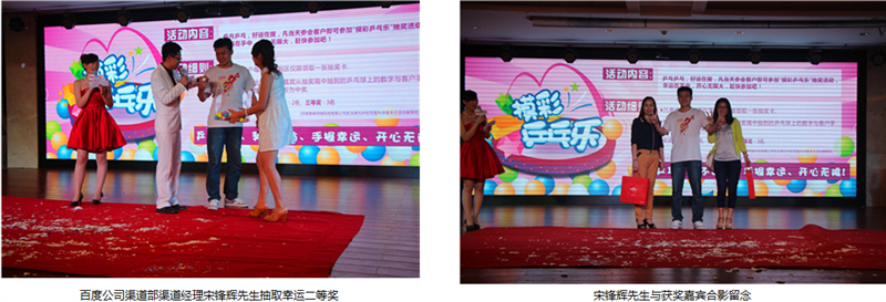 由于市場部和百度客服部的精心策劃和認真籌備,本次答謝會在各環(huán)節(jié)上相比以往都做了創(chuàng)新和改進,“摸彩乒乓樂”活動環(huán)節(jié)抓住了客戶心理,解決了客戶中途離場的難題,客戶中途離場率創(chuàng)造歷史新低。續(xù)費砸金蛋送禮品環(huán)節(jié),更是把本次會議從一個高潮推向另一個高潮。客服部的同事們,就宴會環(huán)節(jié)的節(jié)目也做了精心的準備,使客戶在晚宴時,既嘗到了菜肴的美味,又對精彩的節(jié)目表演贊嘆不已。