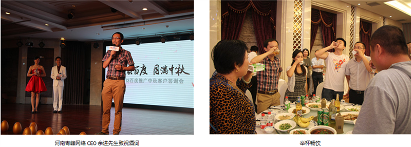 一杯杯酒,一首首歌,道不盡的問候,送不完的祝福,在這收獲的季節(jié),讓我們共同舉杯,祝福彼此。通過本次答謝會,進一步溝通了客服人員與客戶的感情,也更加鞏固了百度推廣在客戶心中的品牌形象,堅定了他們與百度攜手,從一個成功走向另一個成功的信心!