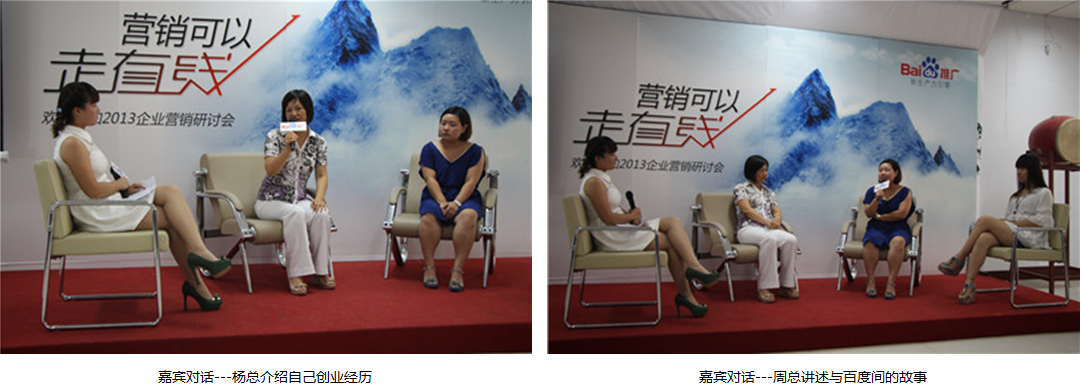 下半場(chǎng)嘉賓對(duì)話環(huán)節(jié),是本次會(huì)議的一大亮點(diǎn),會(huì)議特別邀請(qǐng)了新鄉(xiāng)本土的兩家百度推廣老客戶-新鄉(xiāng)宇仁化學(xué)有限公司楊總、新鄉(xiāng)市通用電機(jī)有限公司周總現(xiàn)身說法,她們用最樸實(shí)的語(yǔ)言講述著與百度推廣的故事,當(dāng)講到百度每年給他們帶來(lái)的收益時(shí),臉上的笑容都是溢于言表。通過她們的講述,使參加本次會(huì)議的新客戶對(duì)百度推廣有了更深的了解,也更加堅(jiān)定了他們與百度合作,加入百度推廣的信心。