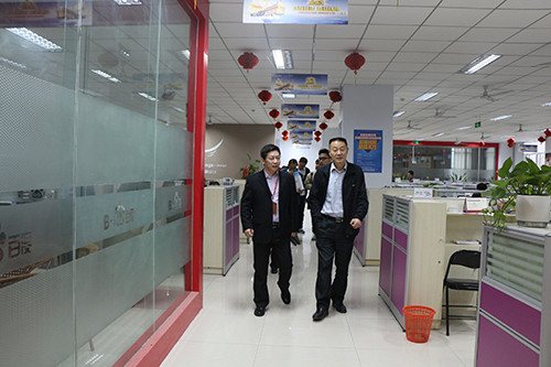 2014年9月16日上午,冒著絲絲細雨,新鄉(xiāng)市政協(xié)副主席朱云卿率領由新鄉(xiāng)市工商聯(lián)、政府發(fā)展研究中心、工商局、商務局、工信局以及新鄉(xiāng)市廣播電視臺組成的調(diào)研團蒞臨河南青峰網(wǎng)絡科技有限公司參觀指導,此次參觀主要是圍繞我市電子商務發(fā)展情況進行調(diào)研,青峰公司總經(jīng)理岳振寧先生陪同參觀。